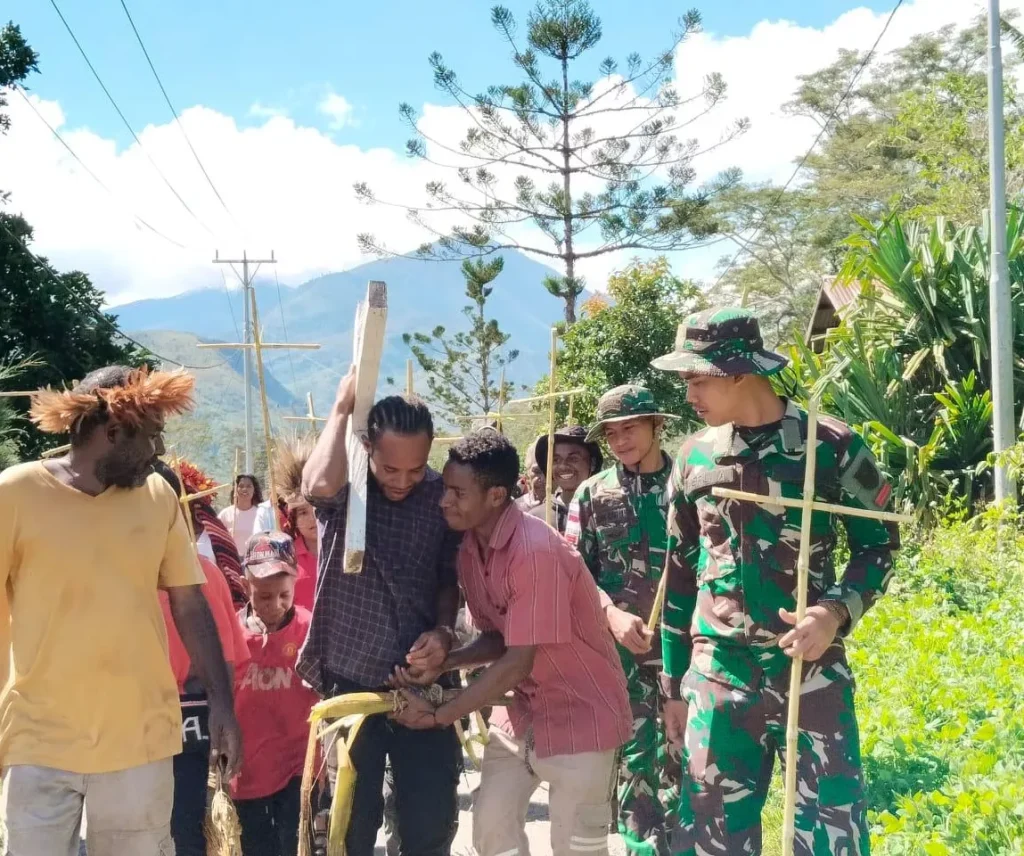 Yahukimo ~ Pos Kurima Satgas Yonif 200/BN bersama jemaat gereja melaksanakan kegiatan ibadah Jum’at Agung di Gereja GKI Polimo, Distrik Kurima, Kab. Yahukimo, Papua Pegunungan, Jum’at (29/03/2024).