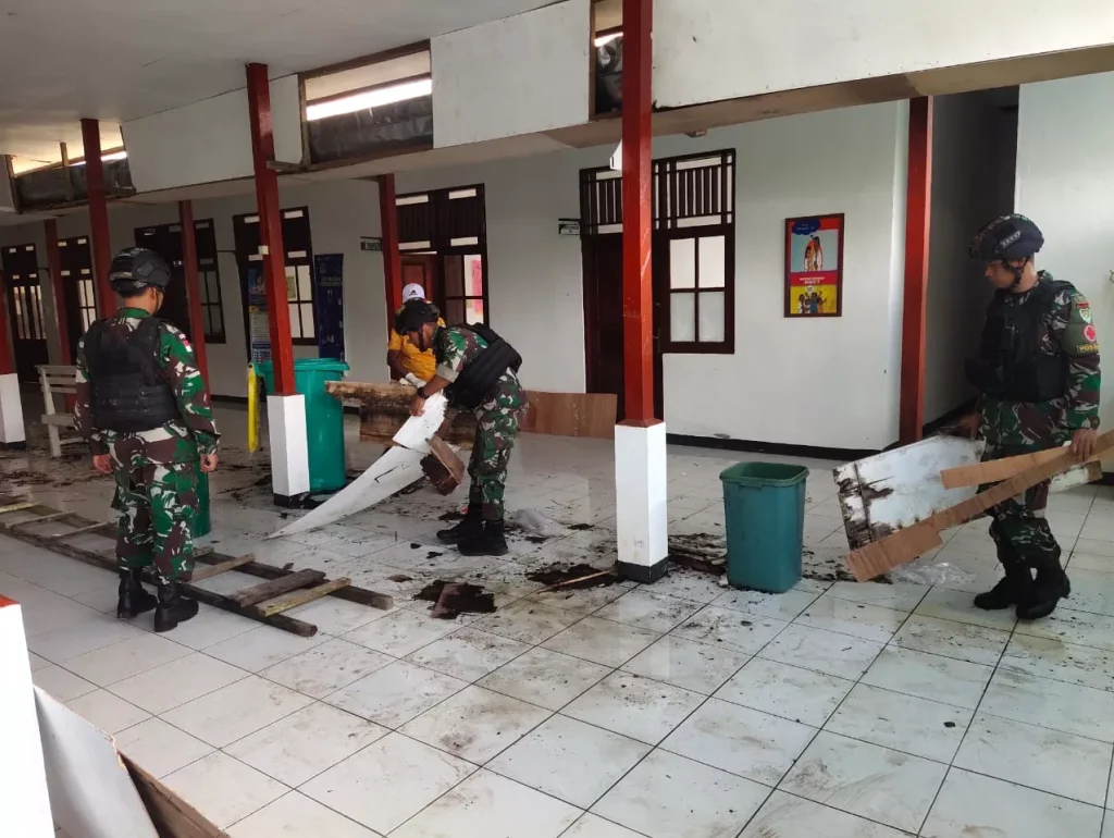 Dikatakan Dansatgas, karya bakti pembersihan Puskesmas dipimpin Pasiter (Perwira Seksi Teritorial) Satgas, Letda Inf As’ari bersama beberapa anggota Pos dan masyarakat serta para pegawai Puskesmas untuk mempercepat proses pekerjaan.