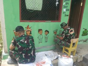 Kabupaten Keerom - Satgas Yonif 122/TS Pos Koki B Pitewi melaksanakan pembangunan dan perbaikan fasilitas belajar dan sarana bermain Taman...