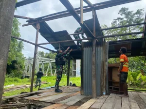 Kabupaten Keerom- Wujud kepedulian Satuan Tugas pengamanan perbatasan RI-PNG Yonif 122/TS Kipur C Pos Kalibom, melaksanakan karya bhakti dengan membantu...