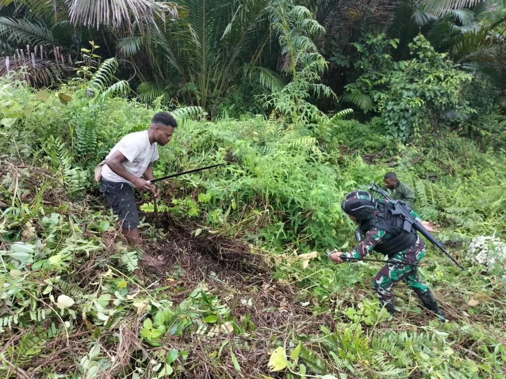 Karya Bakti Satgas Yonif 521 Gotong Royong Pembersihan Makam Islam di Distrik Walesi, Kabupaten Jayawijaya, Papua Pegunungan.