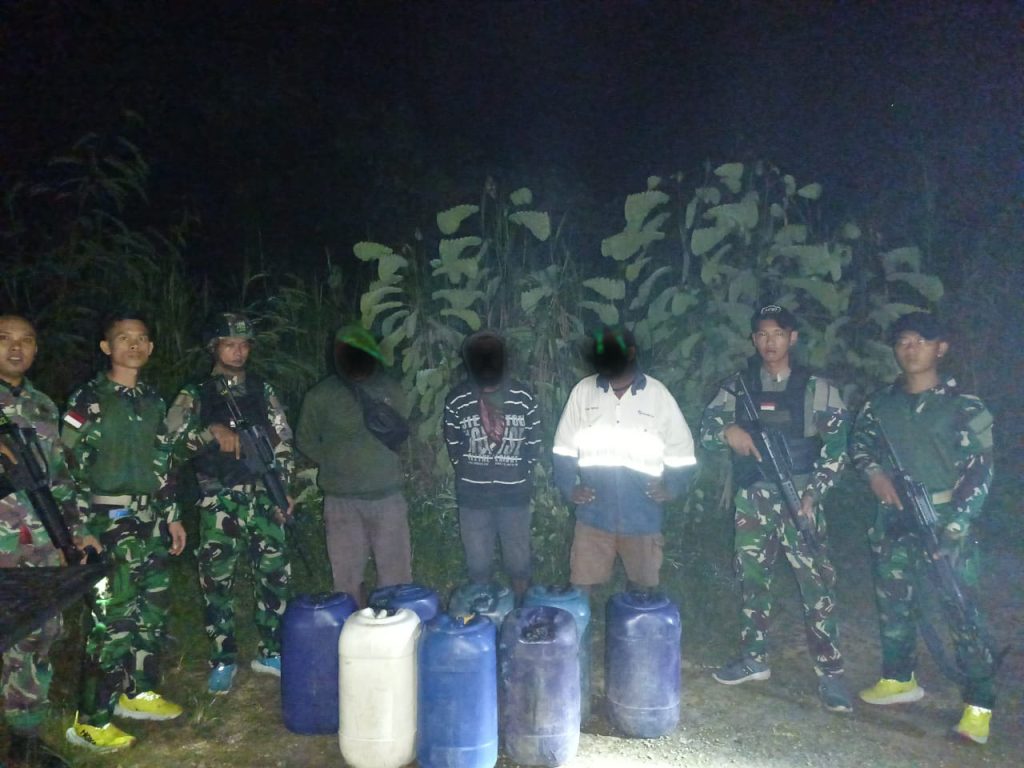 Adapun hasil dari tim patroli pemeriksaan terhadap pengendara tersebut didapati 3 orang warga Negara asing asal Papua Nugini serta 20 jerigen jenis Pertalite dengan jumlah total keseluruhan 700 liter, 2 unit sepeda motor tanpa Plat nomor, 3 merk Handphone, dan barang bukti lain uang sebesar 3.341 Kina yang sudah berada di Portal Perbatasan, yang mana akan diselundupkan ke wilayah negara Papua Nugini, setelah itu anggota Tim Patroli Pos kout membawa 5 orang yang diduga akan menyelundupkan BBM jenis Pertalite ke Pos kout Satgas Yonif 122/TS dan dilaksanakan pemeriksaan lanjutan oleh Wadansatgas Yonif 122/TS Kapten Inf Adi Prayogo.