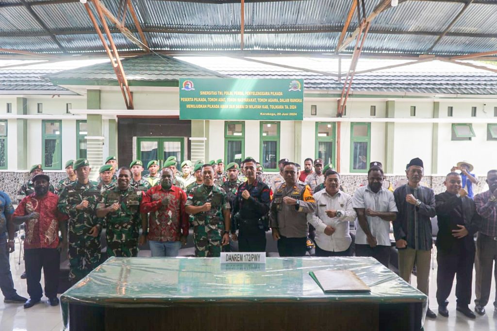 Dalam kunjungan tersebut, Danrem melaksanakan silaturahmi bersama TNI-Polri, Pemerintah dan penyelenggara pemilu serta para Toga, Todat dan Tomas Kab. Tolikara, bertempat di Makodim 1716/Tolikara.