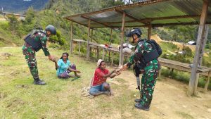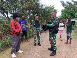 Jayawijaya ~ Satgas Yonif 200/BN melalui Pos Napua melaksanakan anjangsana sekaligus membagikan bola voli kepada masyarakat bertempat di Kampung Okili,...