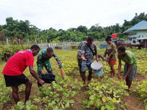 Keerom ~ Panen hasil kebun dari pemanfaatan lahan kosong di sekitaran Pos, Personil Satgas Yonif 310/KK yang berada di Pos...