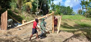 Kabupaten Keerom - Personil Pos Kalilapar Satgas Pamtas Yonif 122/TS mendirikan Gapura Merah putih di Kampung sach, Distrik Waris ,Keerom...