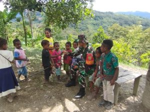 Distrik Muaratami - Satuan tugas pengamanan perbatasan Batalyon infanteri 122/Tombak Sakti menjalin kebersamaan antara personil Pos Mosso dengan masyarakat serta...