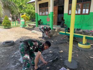 Kabupaten Keerom- Satuan tugas pengamanan perbatasan Statis RI-PNG Yonif 122/TS Pos Ujung karang melaksanakan pembangunan dan perbaikan fasilitas belajar dan...