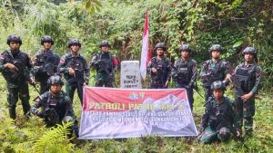 Jayapura - Pastikan titik patok perbatasan tidak bergeser, Satuan Tugas pengamanan perbatasan RI-PNG Sektor Utara Yonif 122/TS Kipur A melaksanakan...