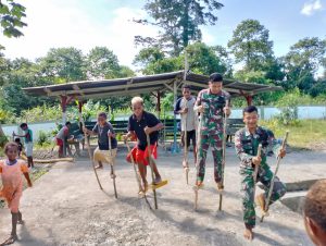 Keerom ~ Membawa keceriaan dan kebahagiaan bagi anak-anak di Perbatasan, Pos Kalipao Satgas Yonif 310/KK membuat dan memainkan permainan tradisional...