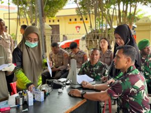 Wamena - Dipimpin Pasipers Kodim 1702/Jayawijaya Letda Inf Paisal, anggota Kodim 1702/Jayawijya mengikuti kegiatan bakti sosial donor darah dalam rangka...