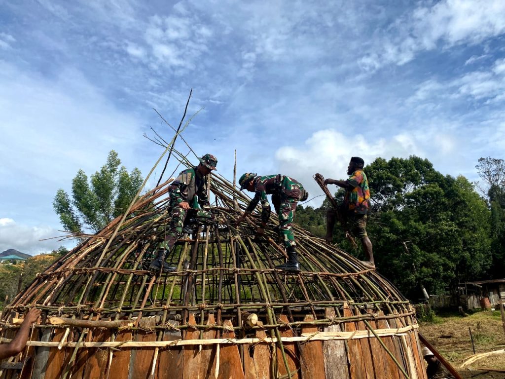 “Jelang purna tugas, kami akan terus berkontribusi dalam membantu masyarakat sekitar, salah satunya dengan membantu membangun Honai milik masyarakat,” jelas Danpos.