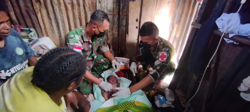 Pegunungan Bintang ~ Respon cepat dalam menyelamatkan ibu hamil yang melahirkan, Pos Kiwirok Satgas Yonif 310/KK lakukan proses persalinan darurat kepada Jarina Kalakmabin (29) warga Kampung Oknanggul, Distrik Kiwirok, Kabupaten Pegunungan Bintang, Papua, Rabu (26/6/2024).