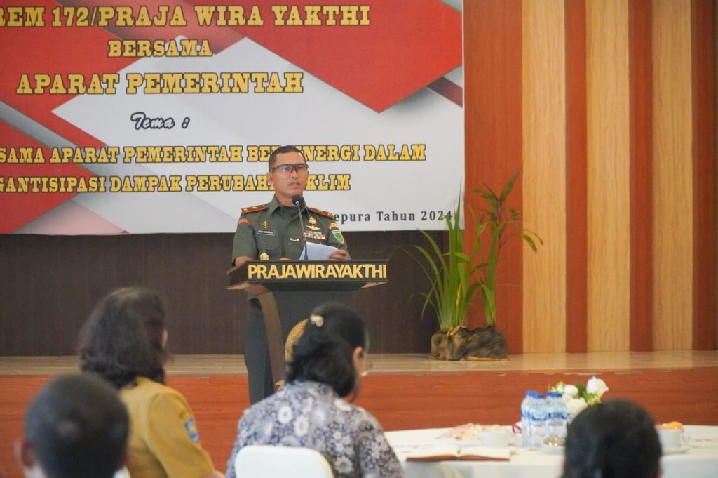 Kegiatan ini berlangsung di Aula Korem 172/PWY, Kota Jayapura, Papua, pada Selasa (11/6), dipimpin langsung oleh Danrem 172/PWY Brigjen TNI Dedi Hardono, S.I.P., dan dihadiri oleh berbagai stakeholder terkait dengan tujuan untuk menyatukan visi dan misi serta meningkatkan koordinasi dalam menghadapi tantangan ketahanan pangan di masa depan.