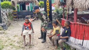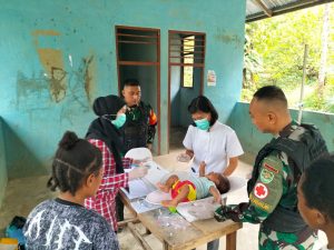 Kabupaten Keerom - Sebagai wujud kepedulian, Satuan tugas pengamanan perbatasan RI-PNG Yonif 122/TS berikan pengobatan kepada anak-anak Kampung Ampas, yang...