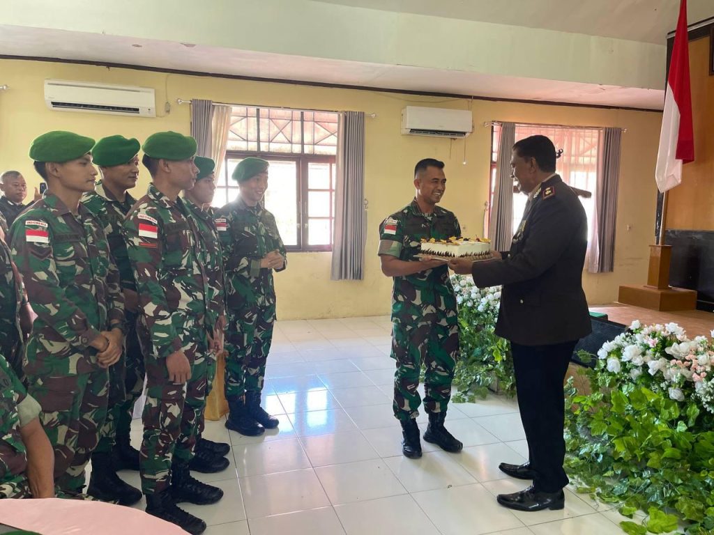 Kami atas nama Satgas Pamtas RI-PNG Yonif 122/TS mengucapkan selamat Hari Ulang Tahun Bhayangkara ke 78, dan semoga kebersamaan TNI-Polri dalam bentuk sinergitas dapat membawa NKRI semakin kuat,” ucap Dansatgas.
