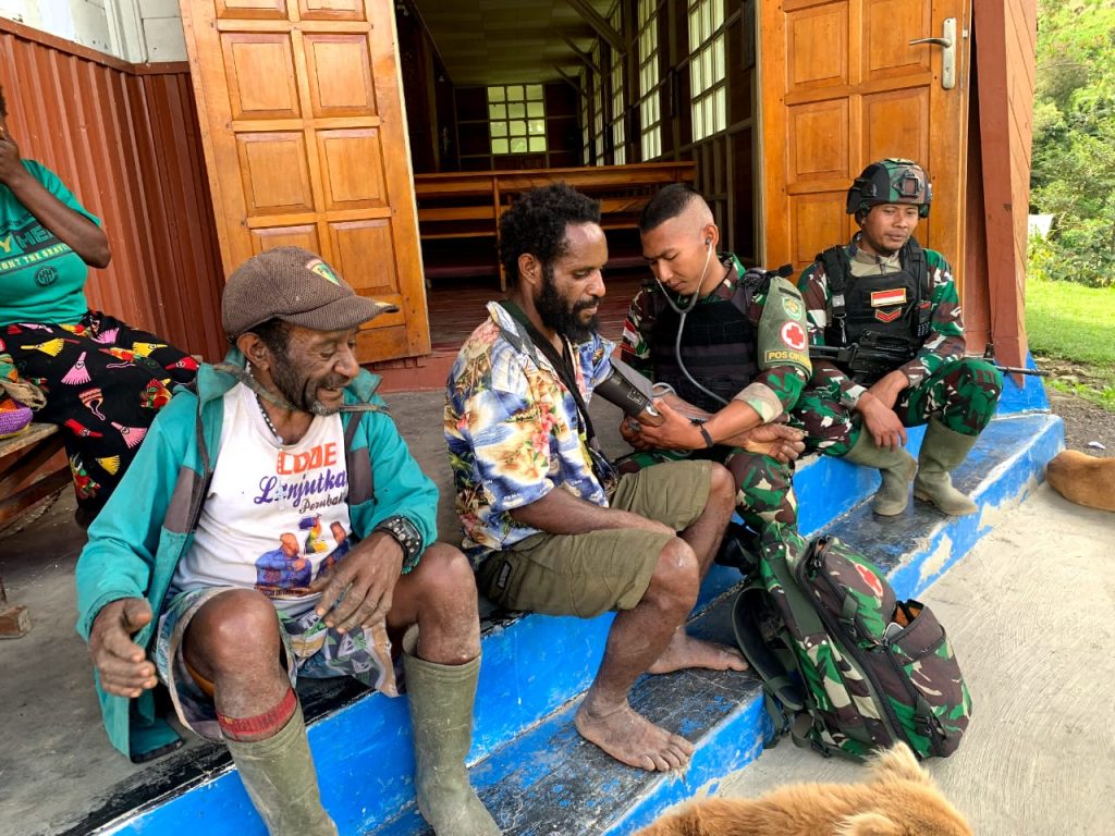 Pada kesempatan itu, Danpos (Komandan Pos) Okbibab Letda Inf Falty Suangro Sagala beserta Tim Kesehatan Satgas berkeliling kampung melakukan pengecekan kesehatan dan pengobatan kepada setiap warga yang ditemuinya.