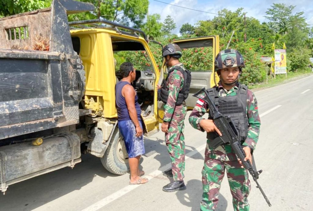 Kabupaten Keerom – Prajurit Satgas Pamtas RI-PNG Yonif 122/TS Pos Ujung Karang melaksanakan kegiatan pemeriksaan (Sweeping) di jalan Tapal Batas Kampung Pikere tepat didepan Pos Ujung Karang Distrik Arso Timur, Kabupaten Keerom, Papua, Jumat (26-07-2024).