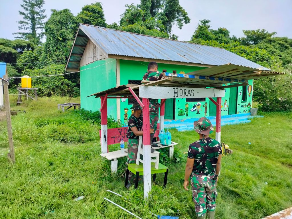 Kabupaten Keerom – Semangat pengabdian Satgas Yonif 122/TS di daerah penugasan terus ditunjukkan dengan karya-karya nyata untuk masyarakat Papua, seperti halnya yang dilakukan Pos Pitewi dalam melaksanakan Karya Bakti Bersama para warga Binaan Kampung Pos Pitewi di TK Awus Pitewi, Distrik Arso Timur, Kabupaten Keerom, Papua, Kamis (04/07/2024)