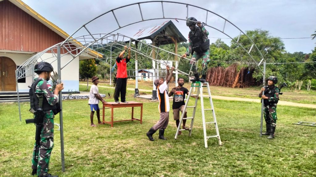 Ditambahkan Dansatgas, gotong royong ini dipimpin oleh Danpos (Komandan Pos) Yuruf Letda Inf Agus Waluyo, lebih kurang 30 warga terlibat dalam kegiatan tersebut. Peyiapan kali ini sudah terbilang hampir selesai, personil Satgas dan warga mendirikan tenda untuk para jemaat yang nanti akan hadir.