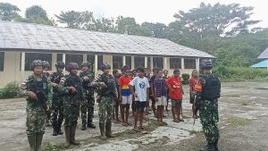 Keerom ~ Sambut tahun ajaran baru 2024-2025 serta menjaga lingkungan sekolah agar tetap bersih dan nyaman, Pos Bompay Satgas Yonif...