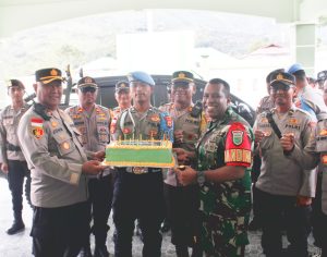 Karubaga, Kapolres Tolikara Kompol Irianto Jhon, S.Sos,M.H beserta Jajaran memberikan Kejutan Dalam Rangka HUT Ke-1 Kodim 1716/Toikara bertempat Makodim 1716/Tolikara...