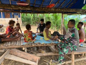 Kabupaten Keerom- Mempererat tali silaturahmi dengan masyarakat Pos Km 76 Satgas Pamtas Statis RI-PNG Yonif 122/TS memberikan bingkisan dan pelayanan...