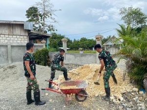 Kabupaten Keerom – Satgas Pamtas Statis RI-PNG Yonif 122/TS Pos Kotis melaksanakan Karya Bhakti dengan bergotong-royong membantu Perbaikan Gereja GKI...