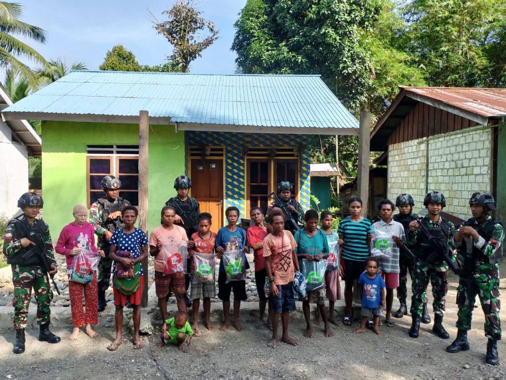 Pada kesempatan itu, Danpos (Komandan Pos) Kalipao, Serma Ahmad Mu’minin berkeliling kampung membagikan pakaian kepada mama dan anak-anak yang berada di Kampung Yuwainda. Sekitar 50 potong pakaian mereka bagikan untuk warga.