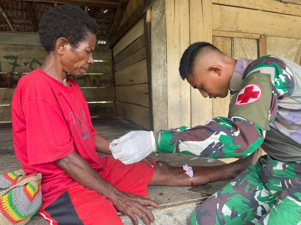 Kabupaten Keerom – Gerak cepat Personel Satgas Yonif 122/TS dalam menindak lanjuti laporan warga Desa binaan pos yang sedang sakit, Personel kesehatan Pos Ampas Satgas Yonif 122/TS langsung bergegas berangkat menuju Rumah warga yang sedang sakit di Kampung Ampas, Distrik Waris, Kabupaten Keerom, Papua, Kamis (11/07/2024).
