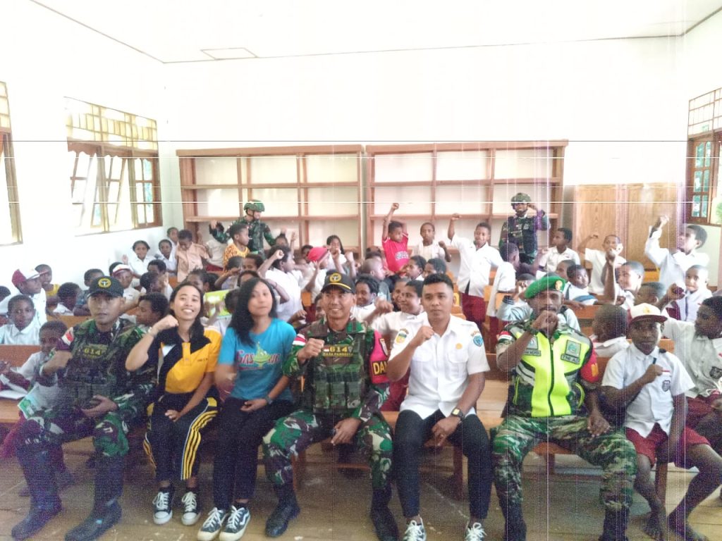 Babinsa Pos Ramil 1716-02/Kanggime berkolaborasi dengan Satgas Pamwil Yonif 614/RJP Pos Kanggime sangat pro aktif dalam menanamkan Semangat Juang Kemerdekaan Kepada Para Murid Sekolahan,