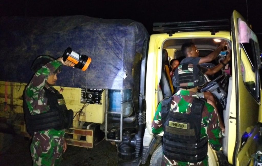 Kabupaten Keerom – Prajurit Satgas Pamtas RI-PNG Yonif 122/TS Pos Kalipay melaksanakan kegiatan pemeriksaan (Sweeping) di jalan lintas trans Papua tepat di depan Pos Kalipay, Distrik Waris, Kabupaten Keerom, Papua, (19/07/2024).