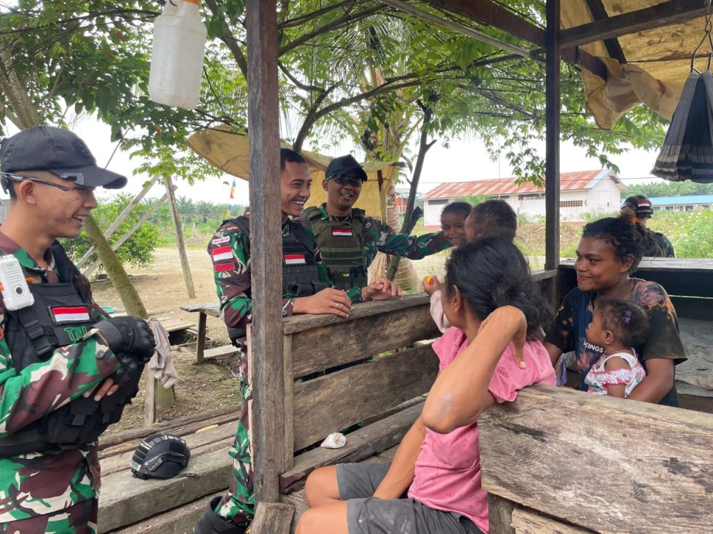 Sementara itu Mama Novale salah satu masyarakat Kampung Pitewi merasa sangat senang dengan kehadiran satgas Yonif 122/TS di tengah tengah masyarakat kampung Pitewi
