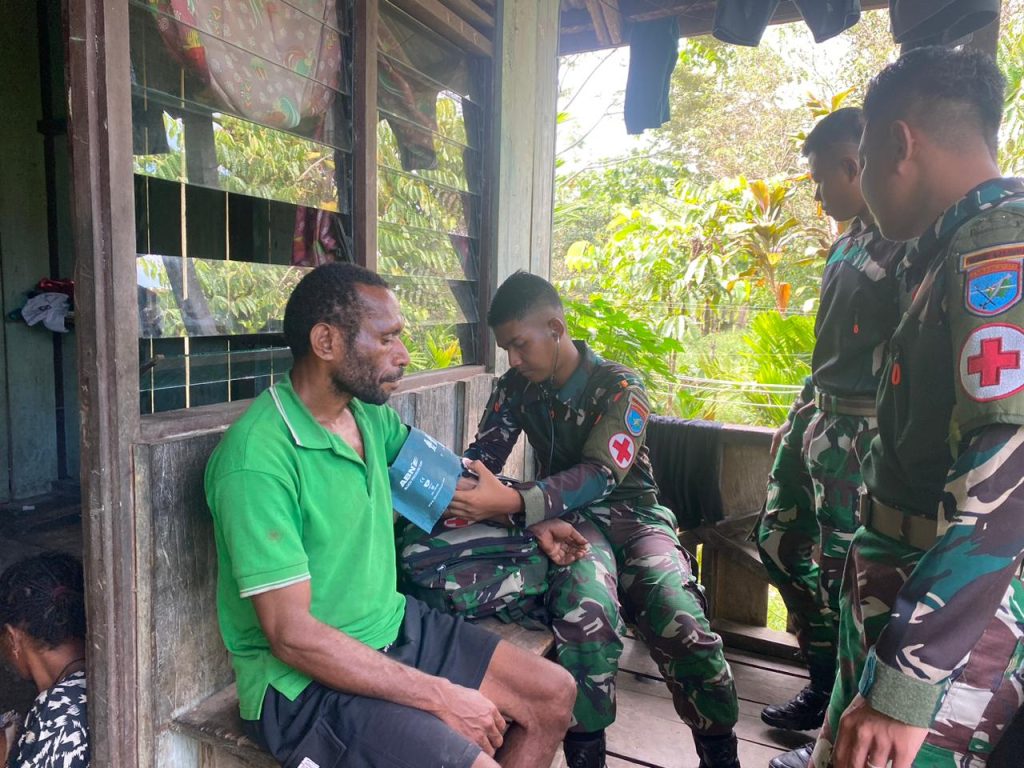 Satgas Pamtas Yonif 641/Bru melalui Pos Benawa kembali menunjukkan kepeduliannya terhadap masyarakat di daerah terpencil dengan menggelar pelayanan kesehatan keliling di Kp. Ampera, Distrik Benawa, Kab. Yalimo, Papua Pegunungan. (03/08/2024).