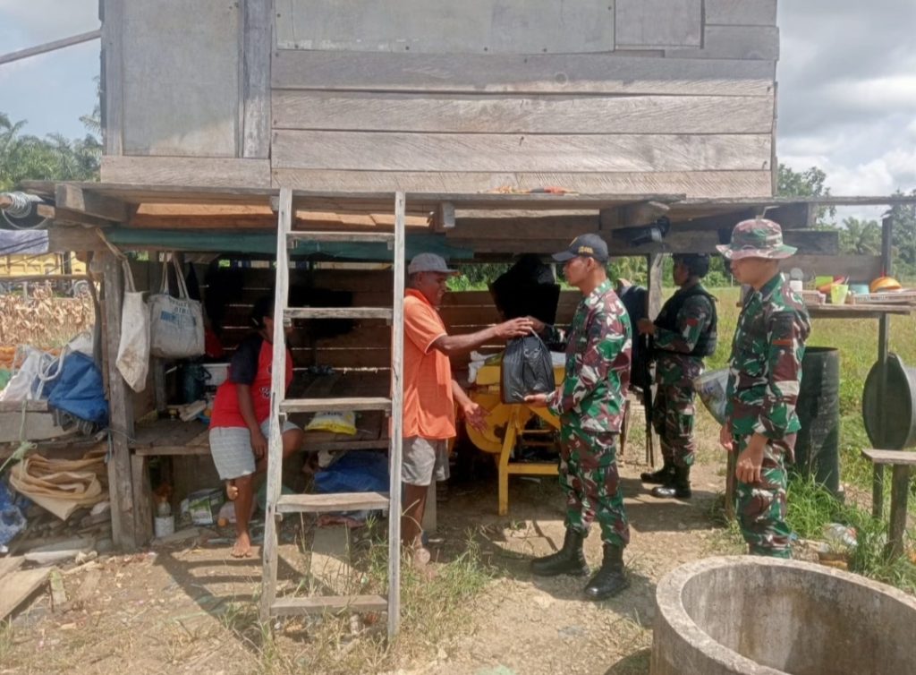 Kabupaten Keerom – satuan tugas yonif 122/TS berbagi kasih dengan memberikan bantuan sembako kepada masyarakat Kampung Wambes, Distrik Mannem, Keerom, Papua (06/08/2024)