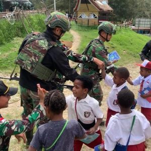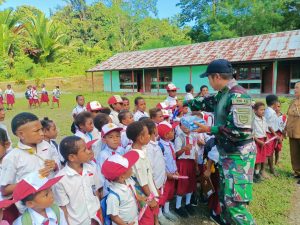 Kabupaten Keerom - Personel satgas pamtas RI-PNG Yonif 122/TS pos waris, kembali mendatangi SD YPPK kenandega waris guna memberikan Kitab...