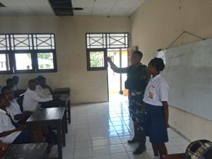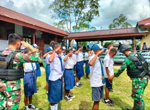 Kabupaten Keerom – Satgas Pamtas Statis RI-PNG Yonif 122/Tombak Sakti melalui Pos Sawiyatami melaksanakan kegiatan belajar mengajar bersama Siswa SD...