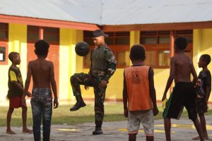 kabupaten Keerom - Satuan tugas pengamanan perbatasan Yonif 122/TS menjalin kebersamaan antara personel Pos Kotis dengan masyarakat melalui kegiatan komunikasi...