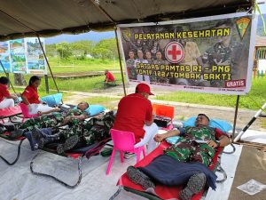 Jayapura - Satgas Pamtas Statis Ri- Png Yonif 122/TS Pos Kout (Komando Utama) Dalam Memeriakan Hut Kemerdekaan Repubelik Indunesia melaksanakan...