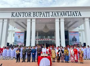 Wamena - Kepala Staf Kodim 1702/Jayawijaya Mayor Inf Romadlon hadiri Upacara Pengibaran Bendera Merah Putih dalam rangka memperingati HUT Ke-79...