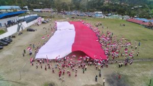 Karubaga, Dandim 1716/TLK yang diwakili Oleh Kasdim 1716/TLK Mayor Inf Edy Ponco Wibowo Menghadiri Gerakan Pembagian 10 Juta Bendera Bertempat...