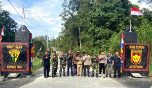 Kabupaten Keerom - Satgas Pamtas Statis RI-PNG Yonif 122/TS pada kegiatan kali melaksanakan peresmian Tugu PLB Distrik Waris yang telah...