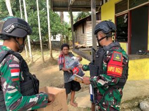 Keerom ~ Wujud perhatian kepada warga di wilayah perbatasan, Pos Unggalom Satgas Pamtas Yonif 310/KK membagikan pakaian kepada warga dan...