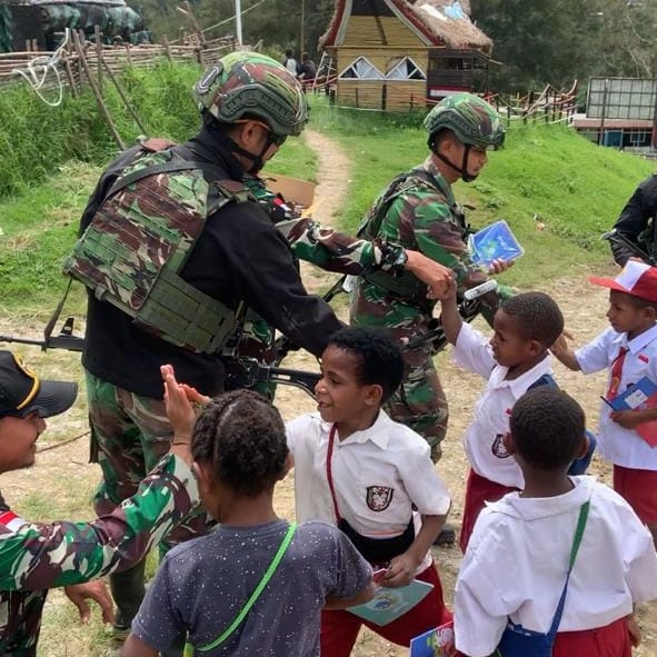 LANNY JAYA – Satuan Tugas Pengamanan Perbatasan (Satgas Pamtas) Yonif 614/Raja Pandhita Pos Pirime peduli dengan pendidikan anak-anak di Kampung Ekanom, Distrik Pirime, Kabupaten Lanny Jaya, Papua Pegunungan. Hal ini ditunjukan dengan pembagian 100 buku dan alat tulis kepada anak-anak sekolah.