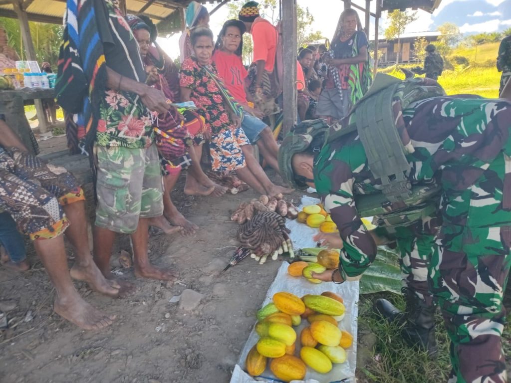 Kegiatan borong hasil tani ini disambut dengan gembira oleh mama-mama yang berjualan, salah satu mama yang berjualan mama weth (37) berterima kasih kepada para prajurit Pos Apalapsili.
