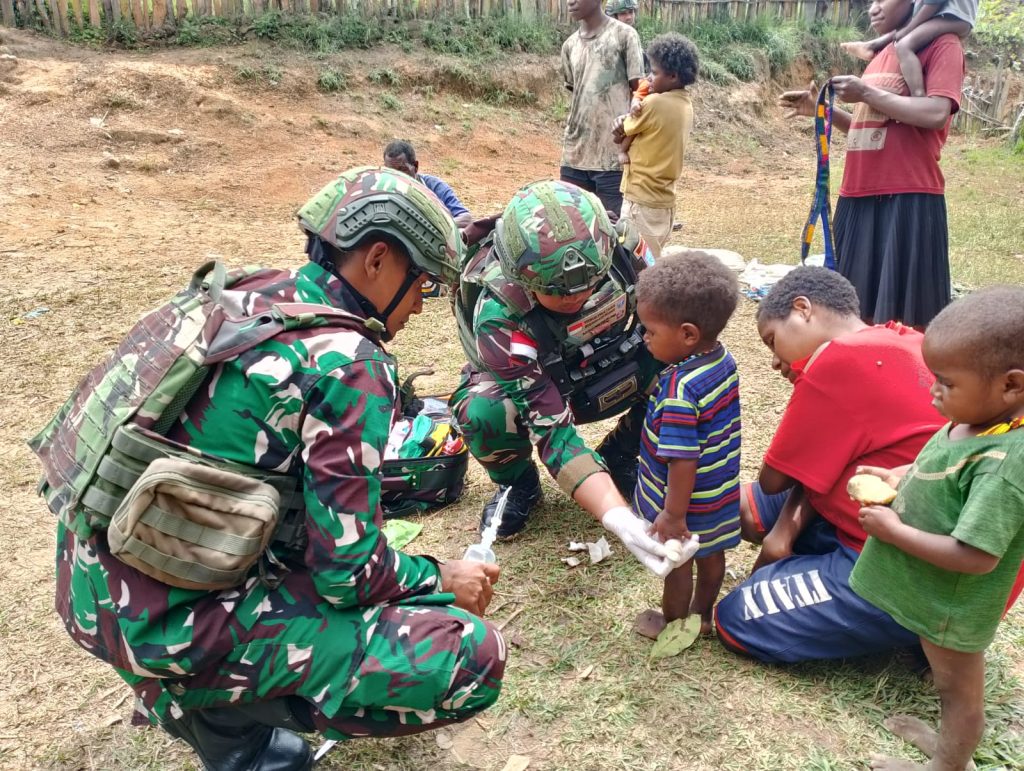 Satgas Pamtas Yonif 641/Bru melalui Pos Napua kembali menunjukkan kepeduliannya terhadap masyarakat dengan menggelar pelayanan kesehatan keliling di Kampung Napua, Distrik Napua Kab. Jayawijaya, Prov. Papua Pegunungan, 31/08/2024.