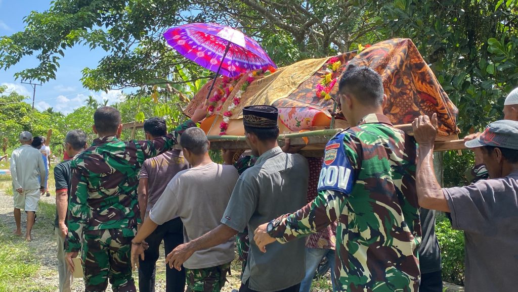 Kab. Keerom- Satgas Pamtas Statis Yonif 131/Brs Kodam I/BB, melalui Pos Kotis menghadiri melayat dirumah duka keluarga Pak Fauzi yang dipimpin Lettu Inf S Sitepu di Distrik Namen, Kabupaten Keerom, Papua.(23/09/2024).