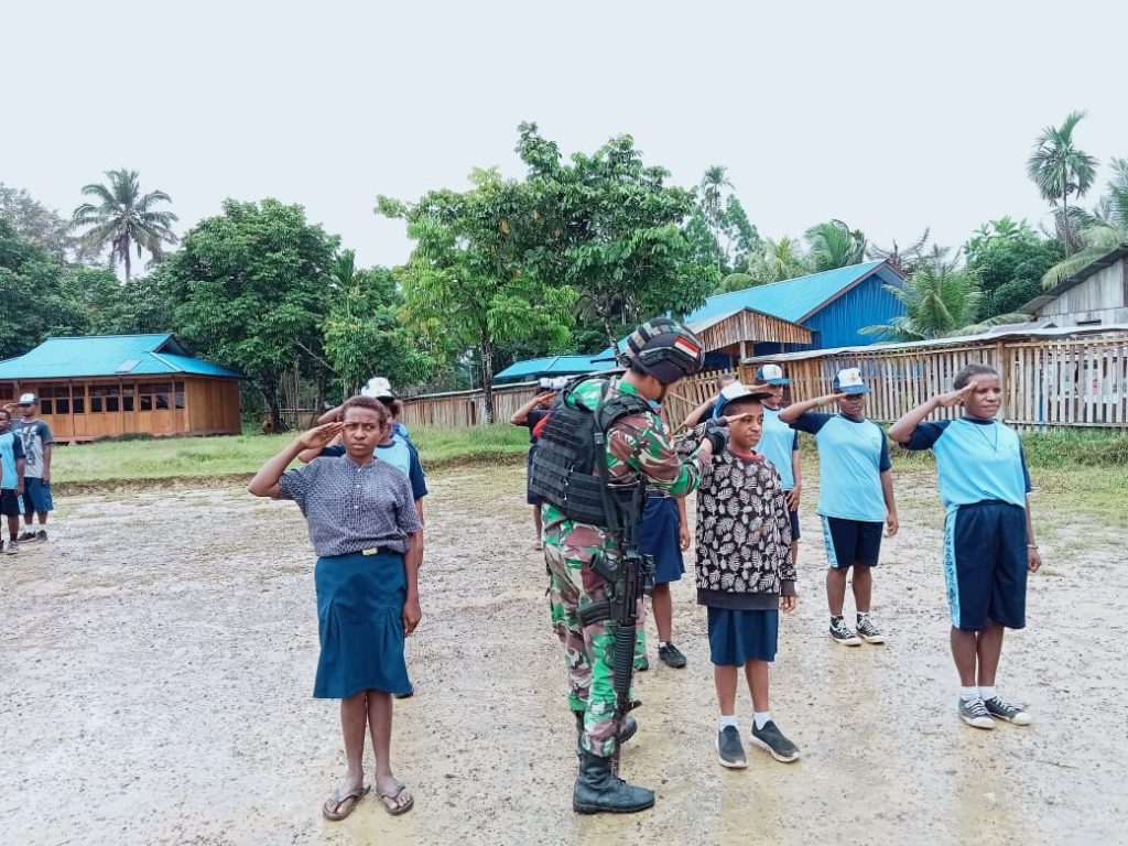 Pegunungan Bintang ~ Menyadari akan pentingnya peran generasi muda, Pos Iwur Satgas Yonif 310/KK berikan ekstrakurikuler PBB (Peraturan Baris Berbaris) kepada siswa-siwi SMP Satap Iwur di Distrik Iwur, Kabupaten Pegunungan Bintang, Papua, Sabtu (31/8/2024).