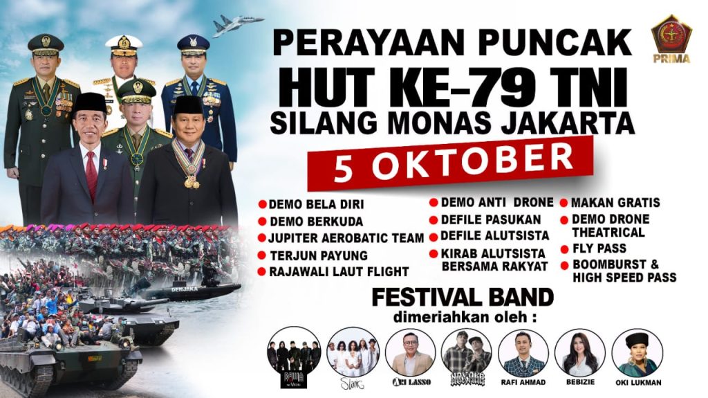 Halo Sobat Semua, jangan lupa hadiri Pesta Rakyat meriahkan HUT Ke-79 TNI di Silang Monas Jakarta.