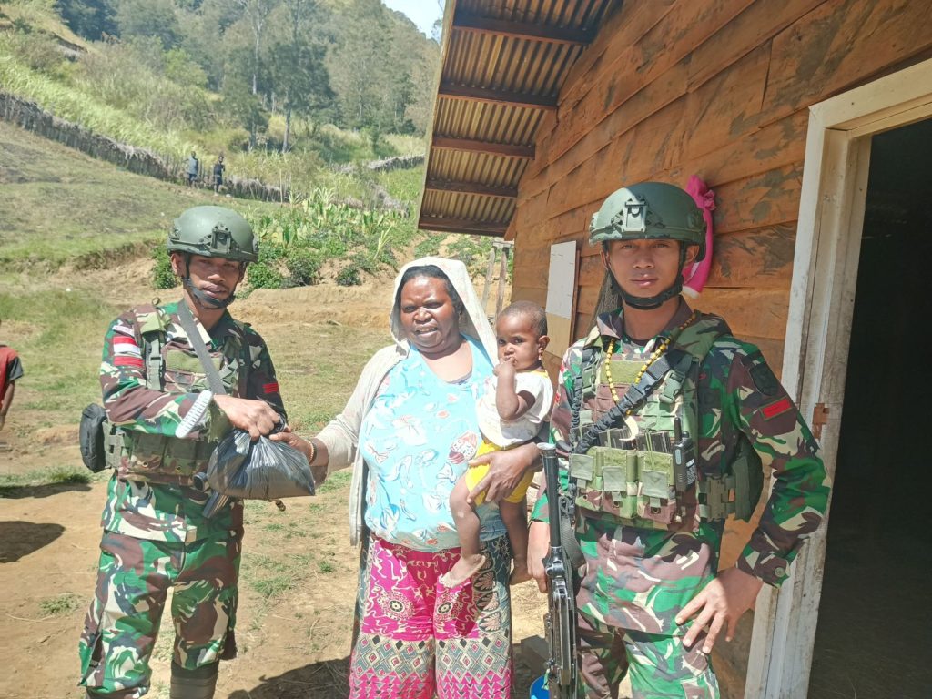 LANNY JAYA — Satgas Pamtas RI-PNG Kewilayahan Yonif 614/Raja Pandhita terus menggencarkan kegiatan anjangsana untuk mempererat hubungan yang sudah terjalin dengan masyarakat di Desa Popome, Distrik Mokoni, Kabupaten Lanny Jaya, Papua Pegunungan, Selasa (15/10).